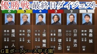 【GⅡ甲子園競艇】優勝戦①毒島②白井③豊田健④上條暢⑤池永⑥重成など最終日ダイジェスト 2024.7.15津競艇GⅡボートレース甲子園最終日12R優勝戦 ①毒島誠②白井英治③豊田健士郎④上條暢嵩⑤池永太⑥重成一人. 2024.07.16